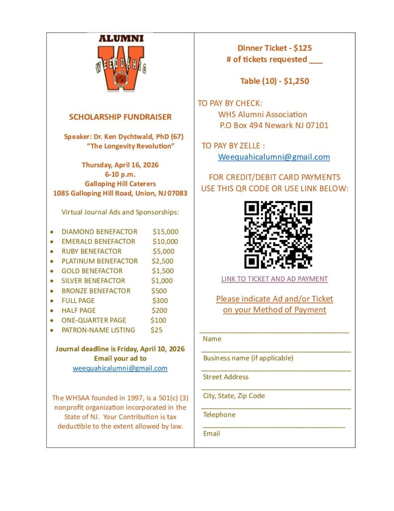 - 2023 SCHOLARSHIP LUNCHEON – The Weequahic High School Alumni Association is pleased to announce that we have awarded 24 graduates with scholarships of $2,200 each to continue their education. In addition, during the 2022-2023 school year, we purchased a new washer and dryer for the school; paid for overnight lodgings for the boys track team to compete in the […]